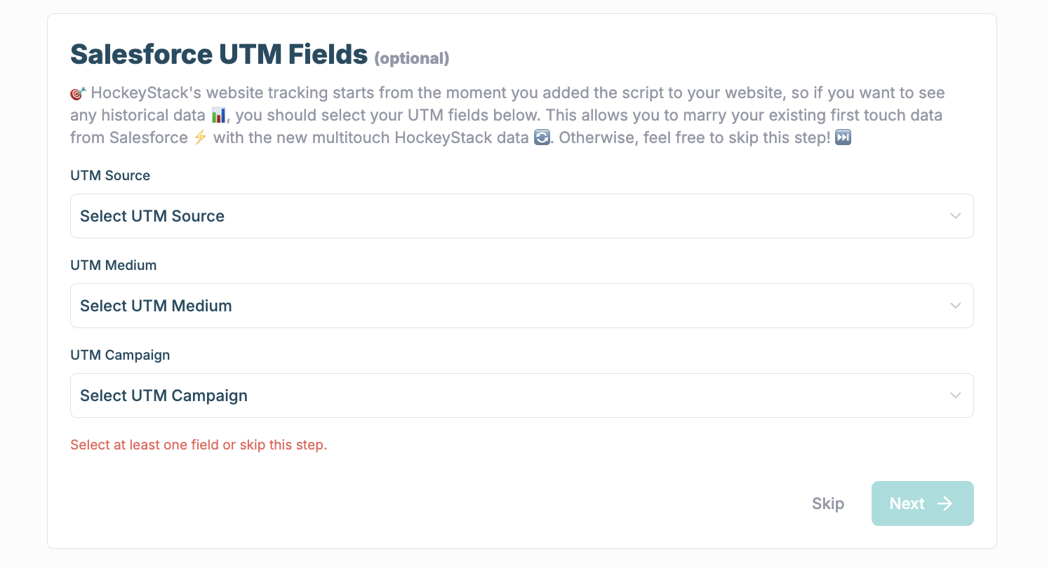 1. If you use HubSpot: historical data will be pulled automatically as the last step of this Onboarding process. Please skip the "CRM UTM Fields" step