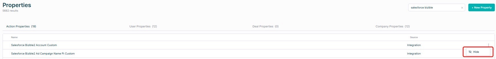 If a property from your CRM is being integrated into HockeyStack but you don’t need it, you can easily hide it.