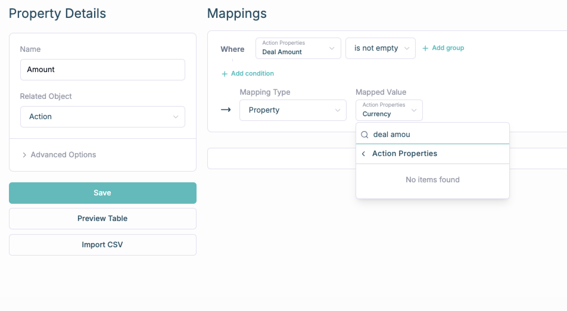 When creating a defined property, you might want to map it to an existing property from an integration instead of assigning it a static value.