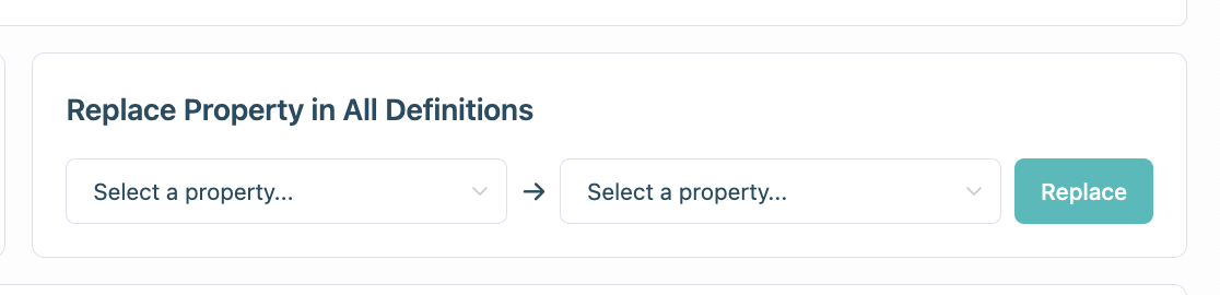 5. Navigate to **Settings → Reporting and Tracking → Replace Property in All Definitions**.<br>