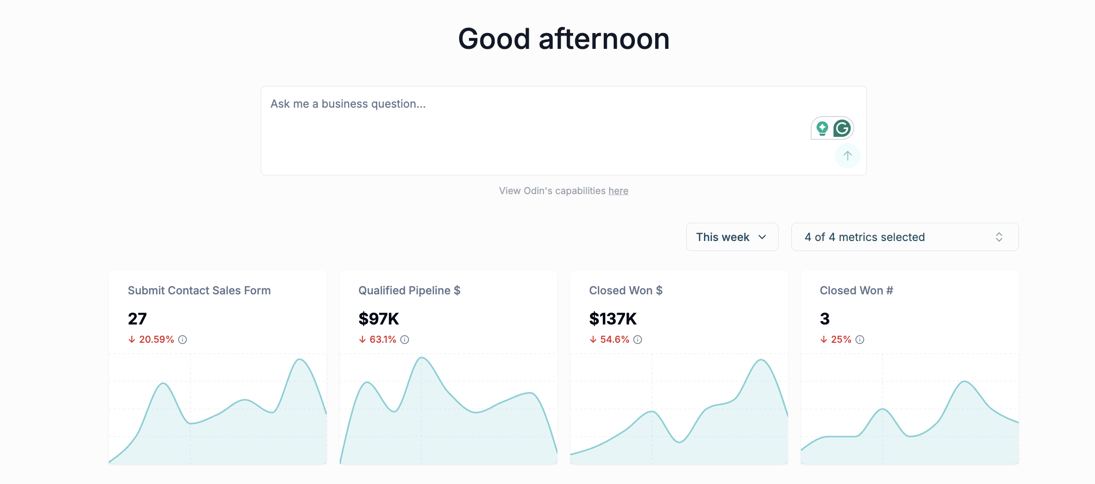 New metrics available in Odin: Conversion rate, time between different funnel stages, lift, average number of touchpoints. You can ask Odin about each of those!