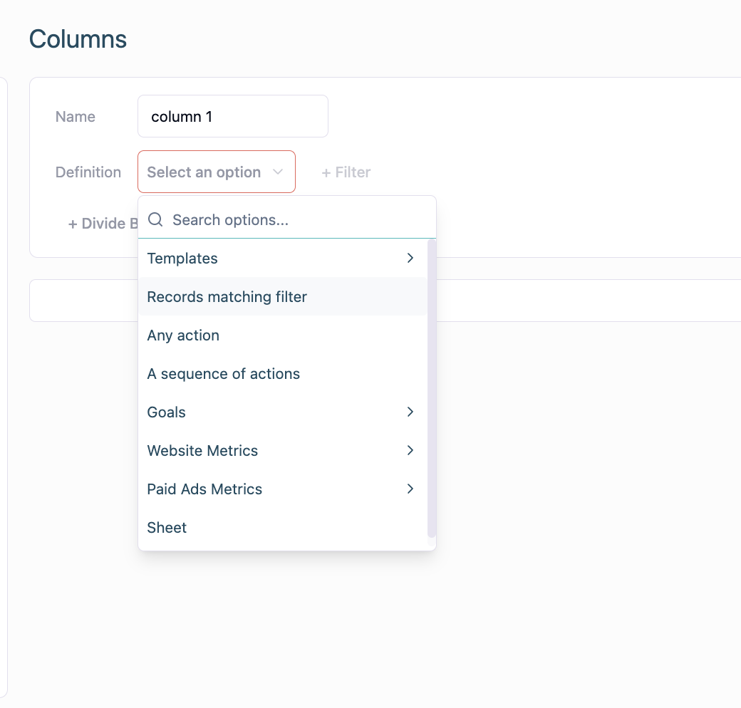 When adding a column, simply select **“Records Matching Filter”** and define which users or companies you’d like to count. Here's a documentation of the feature: [#record-count](#record-count "mention")